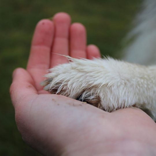 1. Naucz psa, że dotykanie łap to nic strasznego.